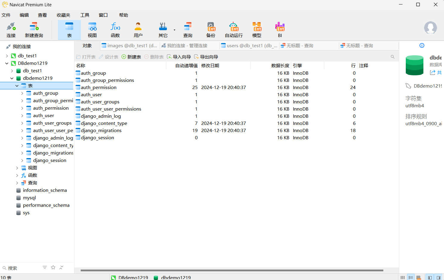 # 看到OK提示即为生成成功 查看数据库 dbdata1219 表目录中生成 polls_userinfo 表即为成功